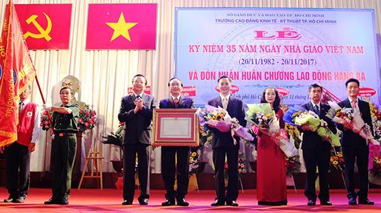 Cùng ngày, tại TP.HCM, Trường CĐ Kinh tế – Kỹ thuật TP.HCM đã tổ chức Lễ kỷ niệm 35 năm Ngày Nhà giáo Việt Nam (20-11-1982/ 20-11-2017) và Đón nhận Huân chương Lao động hạng Ba của Chủ tịch nước trao tặng cho nhà trường và Th.S Phạm Đức Khiêm – Hiệu trưởng nhà trường.