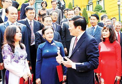 Chủ tịch nước Trương Tấn Sang trao đổi cùng các Đại sứ mới được bổ nhiệm.