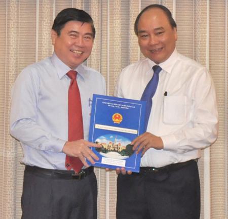 Phó Thủ tướng Nguyễn Xuân Phúc trao quyết định phê chuẩn chức danh Chủ tịch cho Chủ tịch UBND TP.HCM Nguyễn Thành Phong |