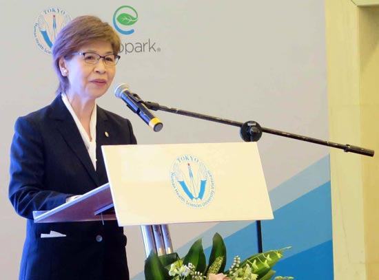 TS. KusumiMari, Chủ tịch HĐQT kiêm Hiệu trưởng Đại học Y khoa Tokyo Việt Nam phát biểu tại buổi lễ