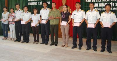 Sáng 18-9, tại Trung đoàn 83, quân chủng Hải quân đóng tại Đà Nẵng, Bộ Tư lệnh vùng 3 Hải quân, Ngân hàng Vietcombank TP.HCM, báo Công An TP.HCM đã trao 30 sổ tiết tiệm (mỗi sổ 5 triệu đồng) cho các cán bộ, chiến sĩ hải quân và thân nhân liệt sĩ Trường Sa.