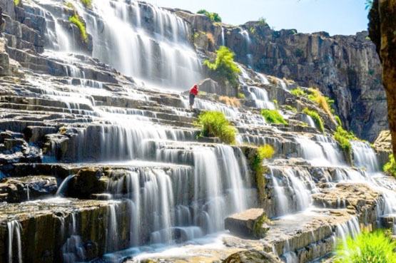 Chảy xuống từ độ cao hơn 40m qua các bậc thang đá và chiều rộng hơn 100m, Pongour là một ngọn thác kỳ vĩ, được mệnh danh là “Nam thiên đệ nhất thác” (thác nước hùng vĩ nhất trời Nam). Thác Pongour được bao quanh bởi một khu rừng nguyên sinh rộng lớn với diện tích hơn 2,5ha cùng thảm thực vật đa dạng, phong phú.