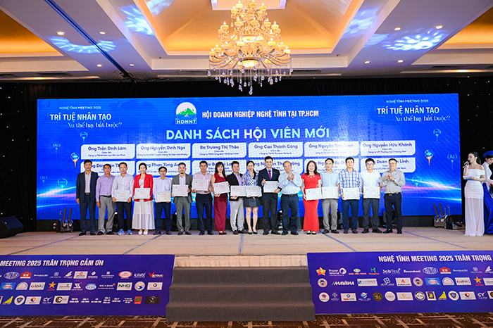 Đặc biệt, Hội Doanh nghiệp Nghệ Tĩnh tại TP.HCM đã kết nạp thêm 45 hội viên mới, khẳng định sự lớn mạnh về quy mô, uy tín và sức lan tỏa của hội trong cộng đồng doanh nhân người Nghệ tại TP.HCM và các tỉnh, thành phía Nam.