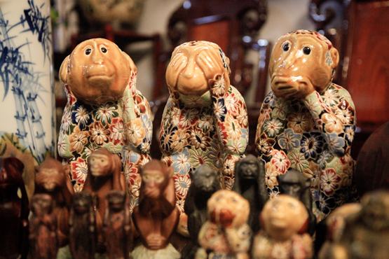 | Tác giả bài viết bên bộ sưu tập tượng khỉ ba không |