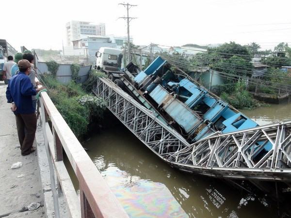 Sự cố sập cầu tạm bắc ở vị trí đang xây dựng cầu Vồng trên Quốc lộ 53 từ Vĩnh Long đi Trà Vinh xảy ra lúc 4 giờ 30 rạng sáng ngày 3/12 do phương tiện xe tải chở hàng từ hướng Thành phố Hồ Chí Minh đi Trà Vinh qua cầu tạm với tải trọng tổng cộng 63 tấn trong khi tải trọng cho phép của cầu tạm là 30 tấn./.