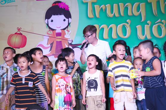 | Các em thiếu nhi hát bài "Chiếc đèn ông sao" cùng ca sĩ |
