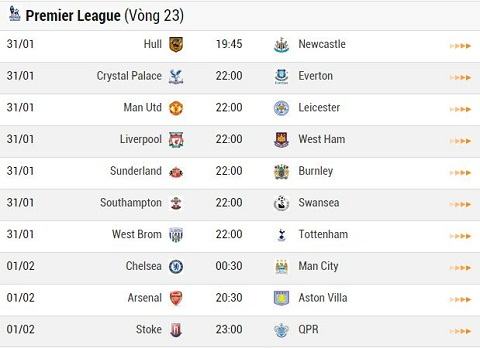 Lịch thi đấu vòng 23 Premier League