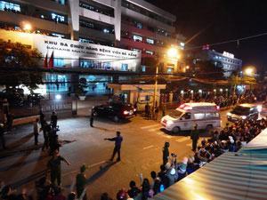 Xe cứu thương đưa ông Nguyễn Bá Thanh về Bệnh viện Đà Nẵng trong tiếng vỗ tay, cổ vũ của hàng ngàn người dân