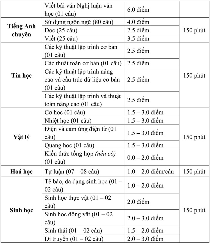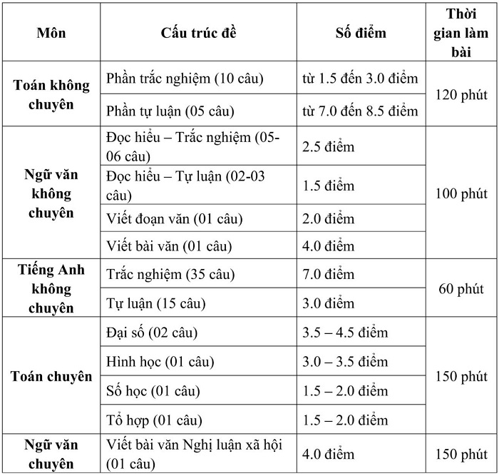 Cấu trúc đề thi lớp 10 Trường Phổ thông Năng khiếu năm 2025 được xây dựng trên nội dung Chương trình GDPT 2018, đảm bảo đánh giá toàn diện kiến thức và năng lực học sinh. Cụ thể như sau: