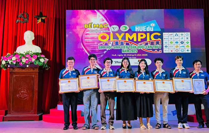 Đoàn sinh viên Trường Đại học Sư phạm Thành phố Hồ Chí Minh đã gặt hái thành tích ấn tượng tại kỳ thi Olympic Sinh học toàn quốc năm 2025, diễn ra từ ngày 22 đến 24-8 tại Trường Đại học Sư phạm – Đại học Huế.