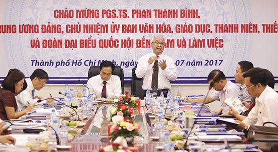 PGS.TS.  Phan Thanh Bình ghi nhận những nỗ lực vượt bậc, khát vọng và sự phát triển nhanh chóng của nhà trường. Về các kiến nghị của trường, ông Bình đề nghị trường nên nêu cụ thể bằng văn bản, sau đó gửi về Ủy ban Văn hóa – Giáo dục – Thanh niên – Thiếu niên và Nhi đồng Quốc hội để có cơ sở làm việc.