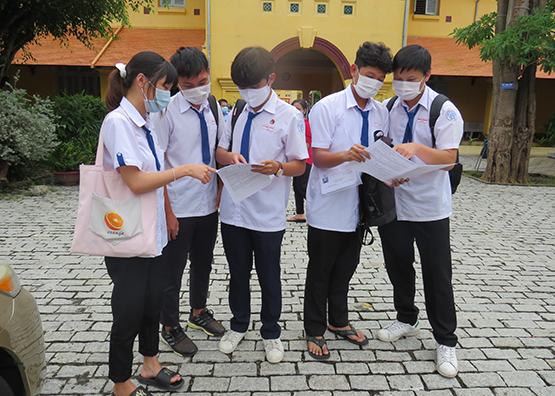 Học sinh Cần Thơ trao đổi sau giờ làm bài trong kỳ thi tốt nghiệp THPT quốc gia năm 2020. Ảnh: Đ.Phượng