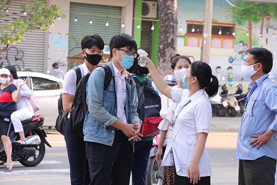 Thầy và trò TP.Đà Nẵng trở lại trường sau thời gian dài nghỉ học vì Covid-19 (ảnh chụp: ngày 4-5-2020). Ảnh: V.Yên