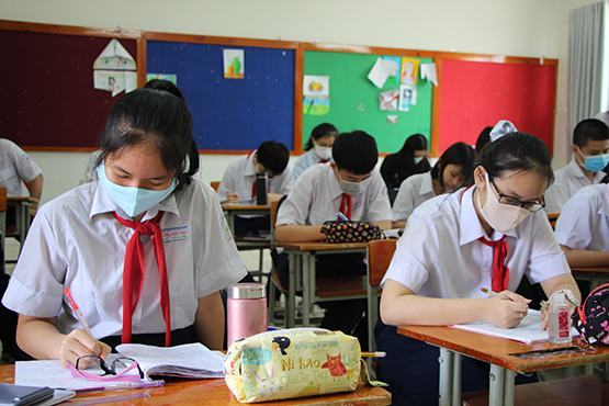 Học sinh TP.HCM trong một tiết học thời Covid-19 (học kỳ II năm học 2019-2020). Ảnh: Y.Hoa