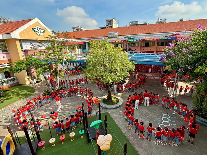 Nhà trường chú trọng đa dạng hóa nội dung và phương pháp giảng dạy thông qua việc tổ chức các hoạt động thực hành kỹ năng sống, mỹ thuật, âm nhạc, thể thao, giáo dục môi trường… giúp trẻ vừa học vừa chơi, vừa khám phá vừa rèn luyện. Không gian học tập được thiết kế mở và linh hoạt, giúp trẻ phát huy tối đa khả năng sáng tạo, phát triển ngôn ngữ, tư duy logic, khả năng cảm thụ nghệ thuật và vận động.