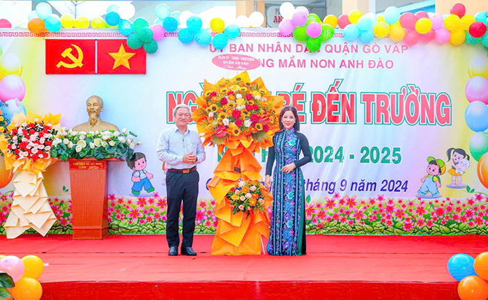 Sáng nay, trong không khí trang trọng và đầy xúc động, Trường Mầm non Anh Đào (quận Gò Vấp, TP.HCM) tổ chức Lễ đón nhận Huân chương Lao động hạng ba – phần thưởng cao quý của Nhà nước dành cho tập thể nhà trường vì những nỗ lực bền bỉ trong sự nghiệp giáo dục và chăm sóc trẻ mầm non. Buổi lễ cũng đồng thời là dịp tổng kết các hoạt động của năm học 2024-2025, đánh dấu một chặng đường 6 năm hình thành, phát triển và vươn lên của ngôi trường này.