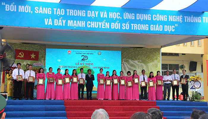 “Tới đây, TP.Thủ Đức thực hiện sắp xếp chính quyền địa phương 2 cấp sẽ thành lập 12 phường mới, trong đó có phường mang tên Hiệp Bình. Đây là phường sáp nhập từ phường Hiệp Bình Chánh và Hiệp Bình Phước, cũng là phường sở tại mà Trường THPT Hiệp Bình đang trú đóng. Tôi tin với sự kiện này, thương hiệu, chất lượng, uy tín của nhà trường sẽ ngày càng vươn xa… Những thành quả của 20 năm qua sẽ là bước tạo đà để nhà trường hoàn thành xuất sắc nhiệm vụ của những năm học tiếp theo” – Trưởng ban Tuyên giáo và Dân vận Thành ủy Thủ Đức bày tỏ tin tưởng.