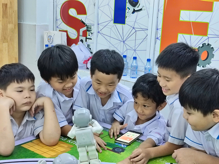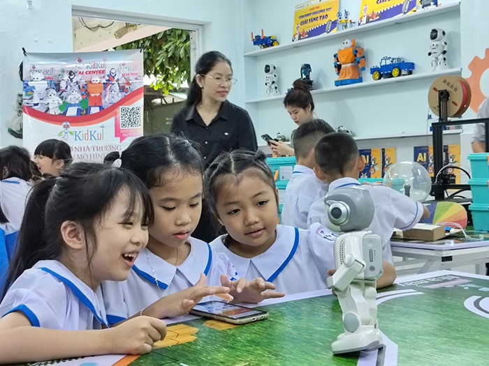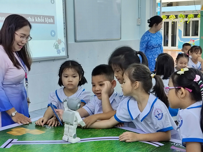 Đây được xem là trường tiểu học đầu tiên của TP.HCM mạnh dạn đưa STEM AI tích hợp song ngữ vào giảng dạy trong năm học mới, nhằm hiện thực hóa NQ57 của Bộ Chính trị về đột phát khoa học công nghệ và chuyển đổi số trong nhà trường.