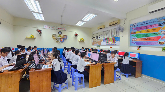 Với tinh thần đổi mới và hội nhập, nhà trường đẩy mạnh ứng dụng công nghệ thông tin và chuyển đổi số trong mọi hoạt động giảng dạy, quản lý và kết nối cộng đồng. Các lớp học thông minh, hệ thống học liệu số K12 online, VnEdu… các phần mềm tương tác và nền tảng trực tuyến đã được triển khai hiệu quả, giúp học sinh chủ động khám phá tri thức và rèn luyện kỹ năng trong môi trường học tập linh hoạt, hiện đại.