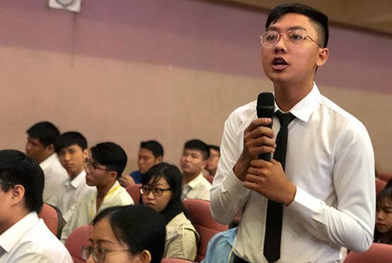 Sinh viên ĐH Quốc gia TP.HCM đặt câu hỏi, trình bày các vấn đề quan tâm tại lễ khai khóa