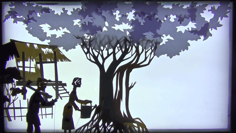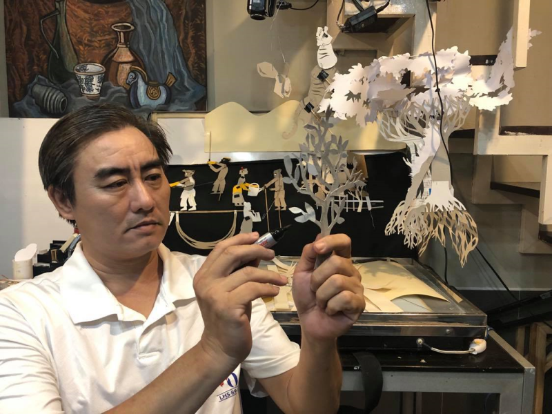 Vốn xuất thân là dân làm rối, anh nghĩ ra ý tưởng tận dụng giấy bỏ đi, hộp giấy đựng trà, cà phê… để tạo nên tác phẩm múa rối bóng.
