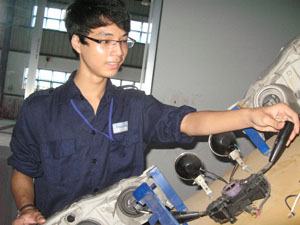 Hồ Thanh Sơn học thực hành về ô tô tại trường