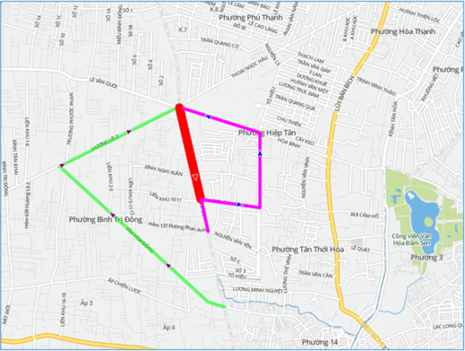 – LT 2: Thoại Ngọc Hầu -> Nguyễn Lý -> Trần Quang Cơ -> Bình Long -> ngã tư Bốn Xã.
