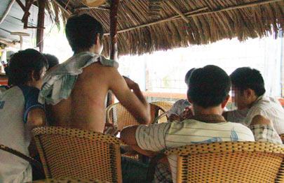 | Một sòng bạc SV tại quán cà phê cạnh ĐH Khoa học xã hội và nhân văn TP.HCM, cơ sở Linh Trung, Thủ Đức – Ảnh: Trần Huỳnh |