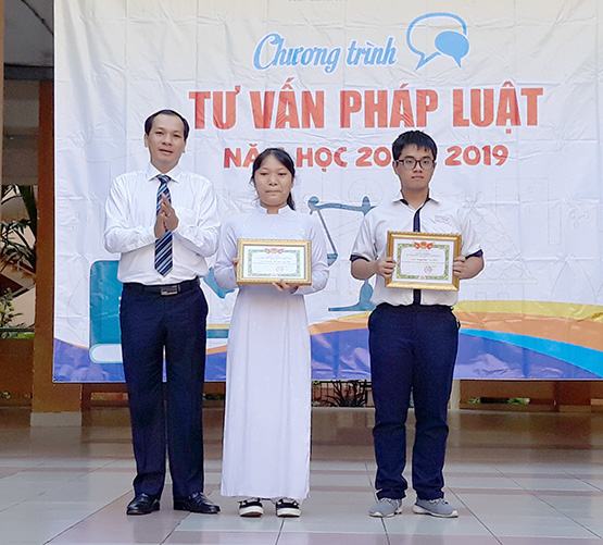 Thy Hiu trưng trao giy khen cho hai em hc sinh