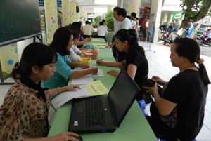 Phụ huynh nộp hồ sơ tuyển sinh lớp 1 tại Trường TH Nguyễn Bỉnh Khiêm (Q.1) năm học 2012-2013
