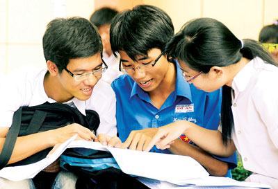 Thí sinh dự thi vào Trường Đại học Khoa học Tự nhiên TPHCM trao đổi sau giờ thi môn sinh vật. Ảnh: Mai Hải