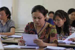 Cán bộ chấm thi đang chấm môn văn tại Trường ĐH Sài Gòn trong kỳ thi tuyển sinh ĐH, CĐ 2012.