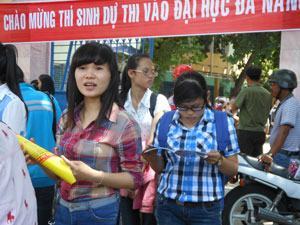 Thí sinh thi vào ĐH Đà Nẵng năm 2014 xem lại bài sau khi rời phòng thi. Ảnh: V.Yên