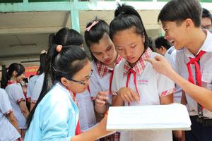 Nhóm TS Nguyễn Hiền Minh Tuấn, Lý Thái Châu và Vũ Anh Đức (HS Trường THCS Colette, Q.3) cho rằng: “Đề thi môn văn theo hướng mở nhiều nhưng khá khó, đặc biệt là ở câu 2 vì chúng em lưỡng lự giữa phương châm hội thoại và phương châm lịch sự. Môn tiếng Anh không có câu nào quá khó, nhiều bạn cùng phòng thi đều làm được bài. Còn môn toán thì tính phân hóa rất cao, ở câu 1 và 2, HS trung bình đều làm được nhưng đến câu 3b bắt đầu khó. Đa số chỉ làm được 60-70%, giành được điểm 7-8 là vui rồi chứ điểm 10 thì chúng em không dám hi vọng”.