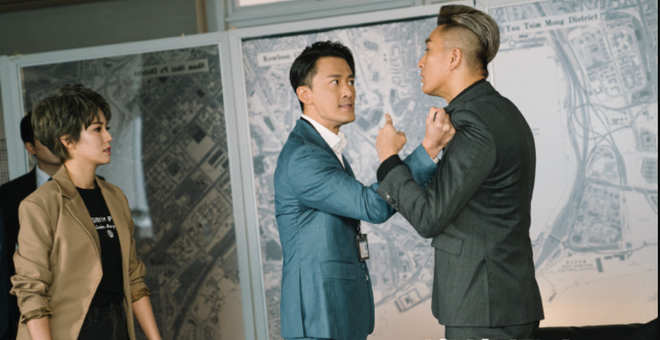 Âu Dương Chấn Hoa và Mã Đức Chung trong phim Đồng nghiệp làm việc lớn. Ảnh: Cắt từ clip