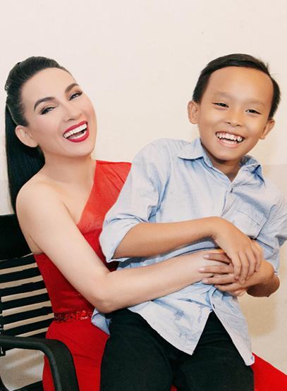 | Thí sinh nhí Hồ Văn Cường và mẹ nuôi – ca sĩ Phi Nhung. Ảnh: Phú Hưng |