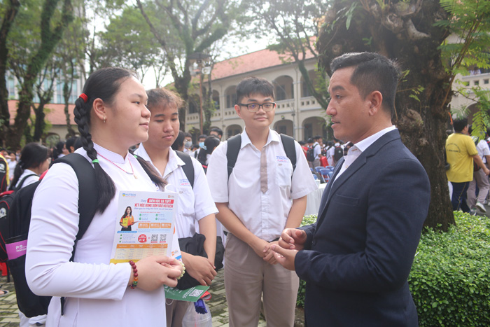 Thông tin cho học sinh về ngành kinh doanh quốc tế, bà Trương Thị Huệ Ngọc (Trưởng phòng Tư vấn tuyển sinh, Trường ĐH Greewich) cho biết, kinh doanh quốc tế là ngành học được nhiều bạn trẻ quan tâm. Ngành này bao gồm toàn bộ các hoạt động trao đổi, giao dịch thương mại như chuyển giao hàng hóa, dịch vụ, tài nguyên, con người, ý tưởng và công nghệ giữa các quốc gia. Đúng như tên gọi, ngành kinh doanh quốc tế mang tính chất toàn cầu và hội nhập rất cao. Để theo học ngành này, sinh viên phải có tố chất năng động, thích kinh doanh, có tư duy logic, có tầm nhìn. Ra trường, các em có nhiều sự lựa chọn nghề nghiệp bởi ngành này đang cần nguồn nhân lực lớn, như: chuyên viên nghiên cứu, hoạch định chính sách kinh doanh; phân tích viên kinh doanh; quản lý tài chính – nhân sự; quản lý nguồn nhân lực đa văn hóa; chuyên gia pháp lý về Luật Thương mại… “Giống như nhiều ngành học khác, kinh doanh quốc tế cũng bị tác động bởi AI. Để sinh viên có đầy đủ kỹ năng, trong quá trình học, nhà trường sẽ đào tạo cho các em cách phát triển kinh doanh thị trường quốc tế thông qua ứng dụng các kênh thương mại điện tử, những kiến thức về đa văn hóa, trau dồi ngoại ngữ thành thạo. Với những kỹ năng này, các em sẽ biết cách ứng dụng, vận hành AI để phục vụ vào công việc. Điều này giúp các em phát triển nghề nghiệp nhanh chóng và sớm đạt được thành công như mong muốn”, bà Trương Thị Huệ Ngọc nói.