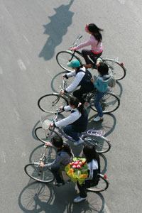 Nhiều học sinh vẫn chưa từ bỏ thói quen đi hàng 3 hàng 4. Ảnh: I.T |