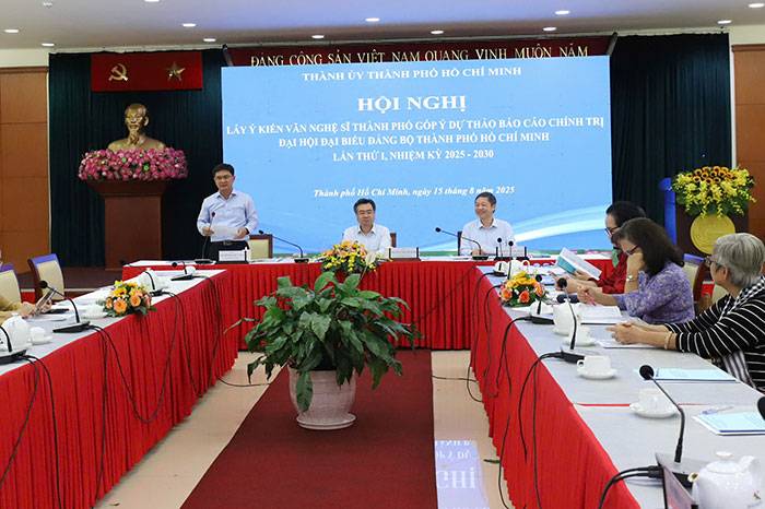 Chiều 15-8, Thành ủy TP.HCM tổ chức Hội nghị lấy ý kiến văn nghệ sĩ góp ý dự thảo báo cáo chính trị Đại hội đại biểu Đảng bộ TP.HCM lần thứ nhất, nhiệm kỳ 2025 – 2030.