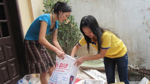 Cứ đều đặn sáng chủ nhật hằng tuần, hơn 50 thành viên CLB Kết nối (Đại học Nông nghiệp 1 Hà Nội) lại “ra quân” thu gom giấy vụn, sách báo cũ và cả chai lọ từ những phòng trọ trong ký túc xá các trường đại học. Một đội khác lân la ở các xóm trọ, khu dân cư ở thị trấn Châu Quỳ (Gia Lâm) – nơi trường đóng quân – để xin người dân ve chai.