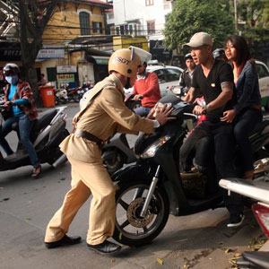 Khoảng 0h20 ngày 4.2, tổ tuần tra kiểm soát thuộc Trung đoàn Cảnh sát Cơ động – CATP. Hà Nội làm nhiệm vụ tuần tra kiểm soát trên đường Tân Triều, huyện Thanh Trì, HN phát hiện 3 thanh niên đi trên 1 xe máy. Cả ba đều không đội mũ bảo hiểm.