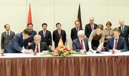 * Nhân dịp này, Chủ tịch nước Trương Tấn Sang cùng các quan chức cấp cao của hai nước Đức và Việt Nam đã chứng kiến lễ ký 6 văn kiện hợp tác bao gồm: Hiệp định cho phép thân nhân thành viên cơ quan đại diện ngoại giao được làm việc có thu nhập; Hiệp định cấp Chính phủ về Hợp tác khoa học và công nghệ; Nghị định thư sửa đổi và bổ sung Hiệp định vận tải hàng không năm 1994; Bản ghi nhớ chung về hợp tác trong lĩnh vực lâm nghiệp; Biên bản ghi nhớ giữa Bộ Công thương Việt Nam, Phòng Thương mại và công nghiệp Việt Nam ký kết với Hiệp hội doanh nghiệp Đức, Văn phòng đại diện Phòng Thương mại công nghiệp Đức tại Việt Nam về Đối thoại thường xuyên; Hợp đồng dịch vụ kỹ thuật giữa VietJet với Tập đoàn Lufthansa về động cơ máy bay A320.
