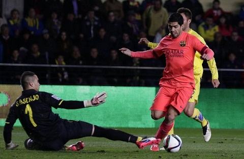 Không nằm ngoài dự đoán ban đầu, ngay khi trọng tài thổi còi bắt đầu trận đấu, Villarreal đã dồn lên tấn công nhằm có được bàn thắng sớm. Đội hình của đội bóng áo vàng được dâng lên rất cao để áp đặt lối chơi. Ngay ở phút thứ 2, cơ hội nguy hiểm đã đến với “Tàu ngầm vàng” khi đội chủ nhà có pha bóng lộn xộn trước vòng cấm của thủ thành Stegen. Tuy nhiên chính vì đội hình dâng lên quá cao khiến cho Villarreal để lộ ra quá nhiều khoảng trống trước khung thành của Asenjo. Và ngay phút thứ 4, các tiếp cận sai trận đấu của Villarreal đã bị trả giá khi tam tấu MSN có pha phối hợp quá đẳng cấp. Suarez thoát xuống khôn ngoan bên hành lang cánh trái để chuyền ngang cho Messi, số 10 bình tĩnh khống chế và chuyền bóng tinh tế để Neymar dễ dàng mở tỷ số cho Barcelona.