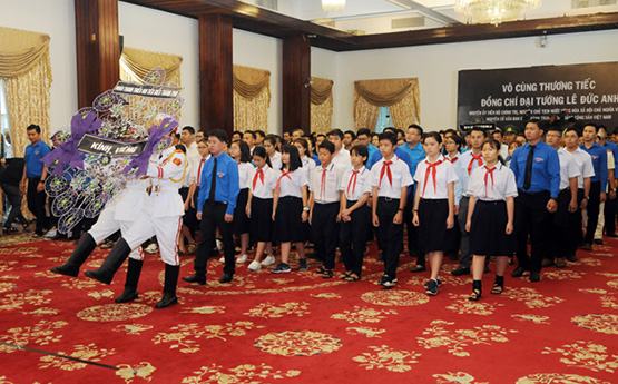 Đoàn học sinh, thanh niên vào viếng đồng chí Lê Đức Anh
