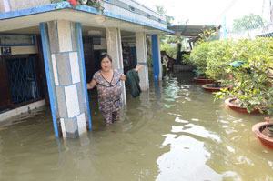Đến sáng 5-12, triều cường tiếp tục dâng cao khiến khu vực trên đã ngập giờ còn ngập nặng hơn. Nhà cửa, vườn tược của người dân bị bao vây bởi biển nước mênh mông. Từ sáng sớm, đường Tam Bình ngập lênh láng, nhiều xe máy qua khu vực này bị chết máy, học sinh tiểu học phải nghỉ học, nhiều xưởng sản xuất, cửa hàng kinh doanh phải đóng cửa vì nước ngập vào tận bếp.