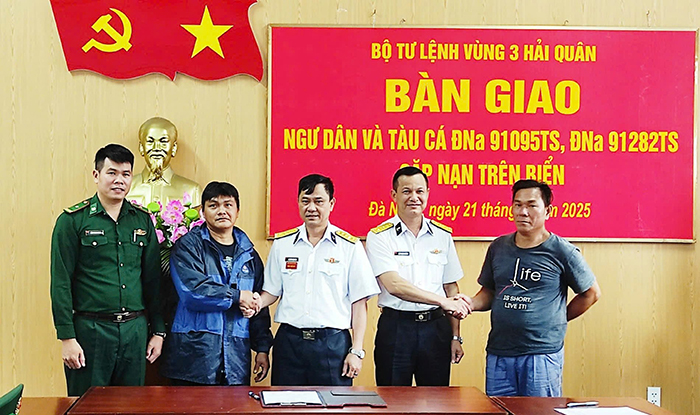 Ngày 21-3, tàu 368, Vùng 3 Hải quân đã thực hiện bàn giao tàu cá mang số hiệu ĐNa 91095 TS và ĐNa 91282 TS cho cơ quan chức năng. Đây là hai tàu cá bị nạn trên biển trước đó.