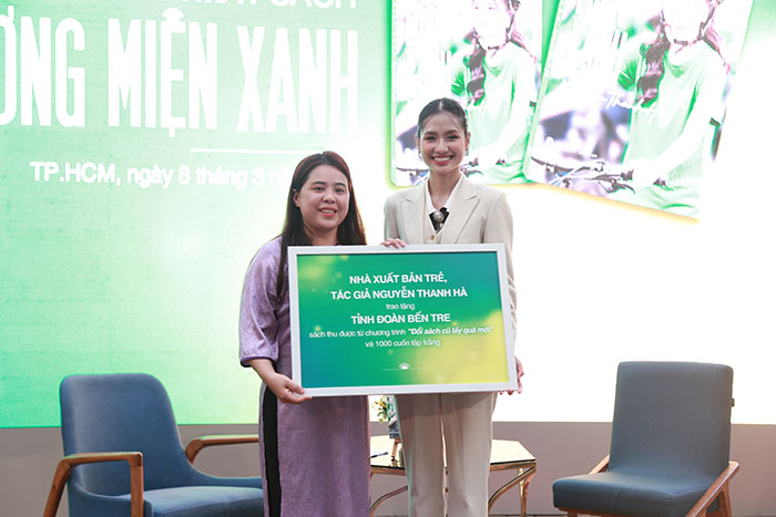 Trong khuôn khổ chương trình, Nhà xuất bản Trẻ và tác giả còn tổ chức chương trình “Đổi sách cũ lấy quà mới” khuyến khích mọi người sống xanh bảo vệ môi trường. Toàn bộ sách cũ thu được và 1.000 cuốn tập được tác giả tặng cho Tỉnh đoàn Bến Tre.