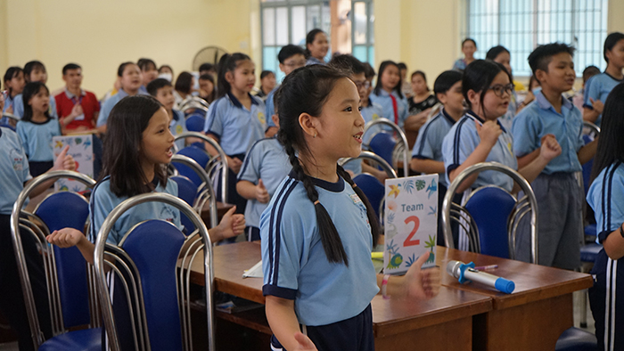 Bên cạnh đó, khả năng phát âm và ngữ điệu của học sinh cũng được cải thiện rõ rệt khi học cùng giáo viên nước ngoài. Thầy Hữu cho biết: “Chúng tôi áp dụng nhiều phương pháp giảng dạy hiện đại như TPR, các bài hát, flashcards, trò chơi và nhập vai để học sinh dễ dàng tiếp thu kiến thức”. Nhờ các phương pháp này, các em trở nên tự tin, chủ động hơn trong các hoạt động giao tiếp hàng ngày.