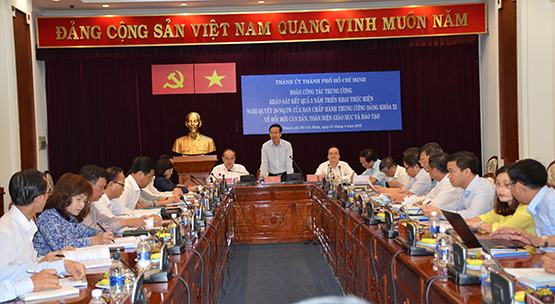 Báo cáo tại buổi làm việc, đồng chí Lê Thanh Liêm – Phó Chủ tịch Thường trực UBND TP.HCM cho biết, trong 5 năm qua, TP có những chuẩn bị chu đáo, tích cực để đưa những nội dung NQ 29 vào thực tiễn đời sống, góp phần để GD-ĐT TP tiếp tục phát triển, giữ vững ngọn cờ đầu của cả nước, từng bước hội nhập với các nước trong khu vực và trên thế giới.