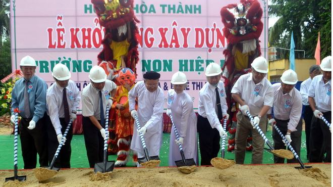 Ngày 12-7, UBND huyện Hòa Thành (Tây Ninh) tổ chức lễ khởi công xây dựng Trường mầm non Hiệp Định, tại cơ sở Trường tiểu học Lê Thị Hồng Gấm (cũ). Đây là ngôi trường do gia đình ông Đặng Hữu Nghĩa và bà Lê Thị Hảo tài trợ.